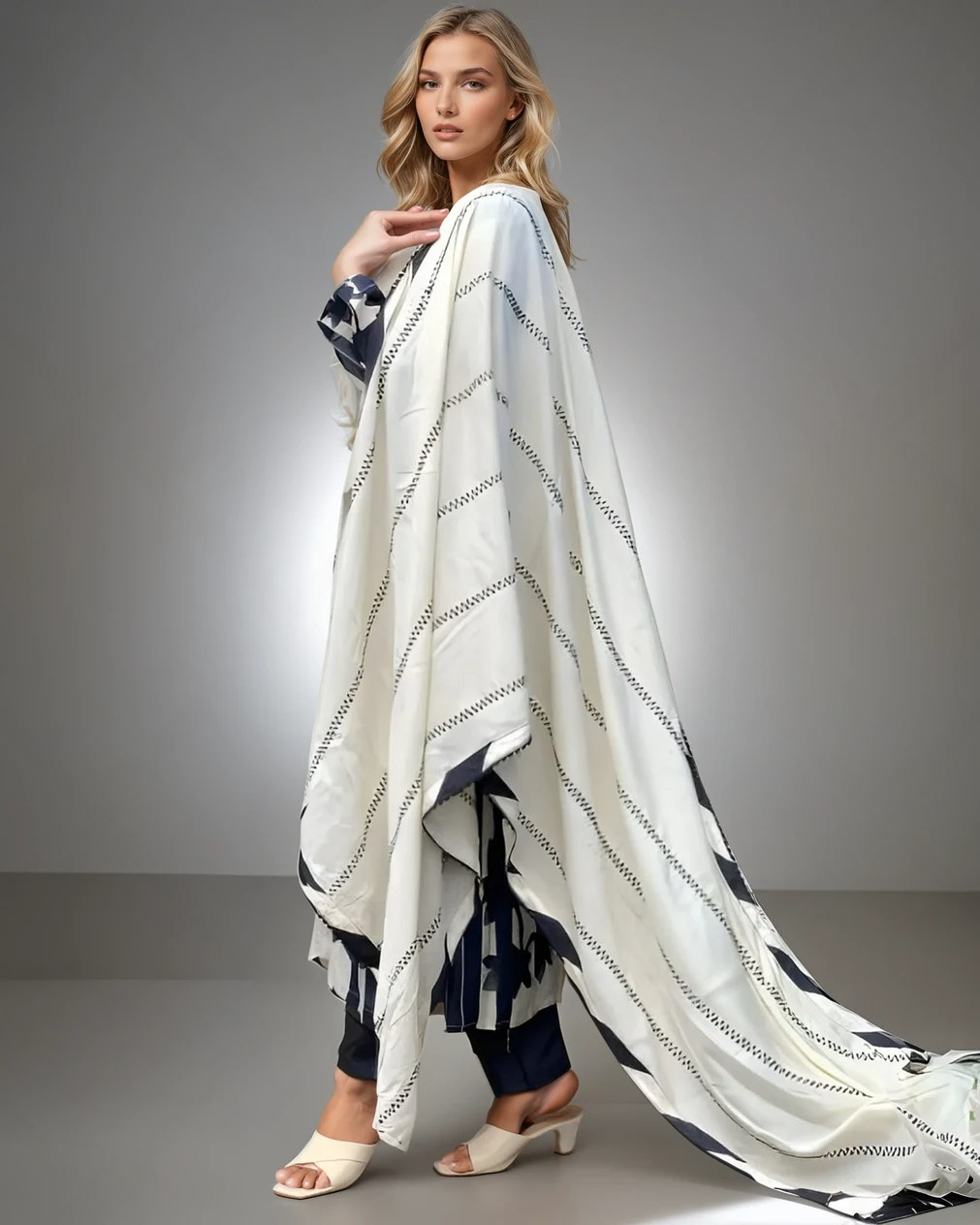 - Featuring Fully Elegant Pure Muslin Suit Set Which is Beautifully Decorated With Beautiful Flower Print And Lace Detailing.