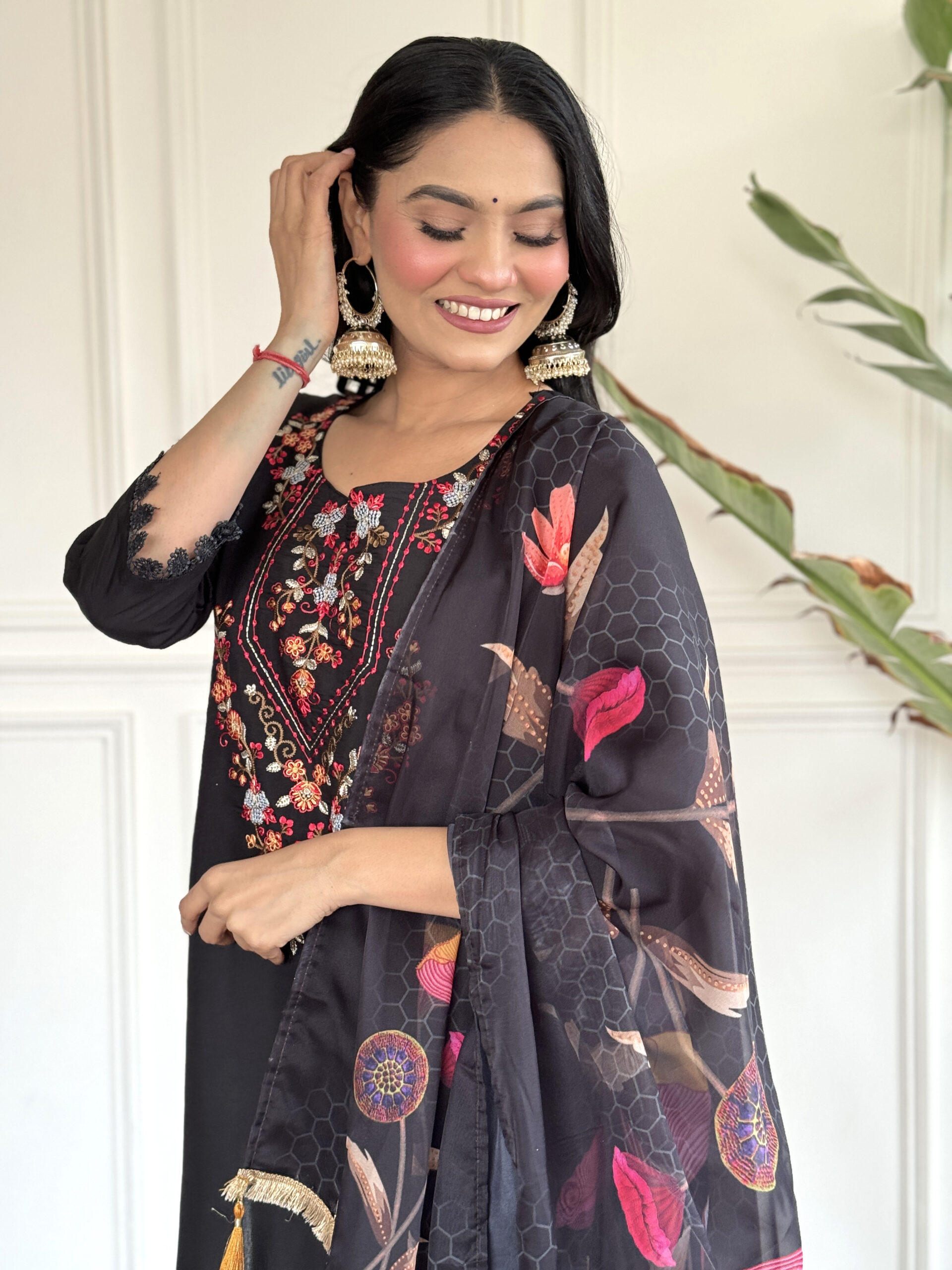 Black embroidered Kurta with Trousers with dupatta
